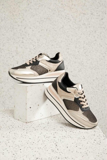 Basket brillante beige et chocolat avec une touche de rose poudré, magnifique et confortable.