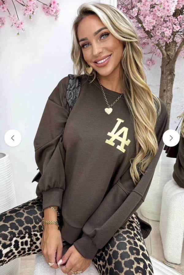 Sweat LA automne/hiver, femme, polyester et viscose, élastique, fabriqué en Italie. Parfait pour la saison froide avec un style sportswear décontractéé.