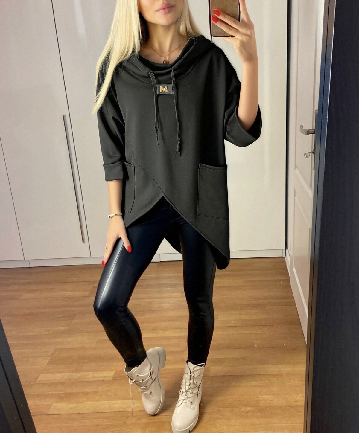 Sweat-shirt décontracté pour femme, idéal pour l'automne et l'hiver en viscose et polyester, extensible, pour un confort quotidien.