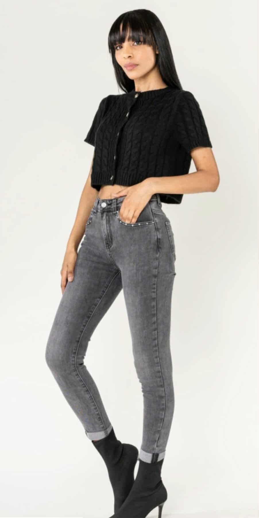 Jeans slim clouté bleu, Élasthanne, confortables, pour un style urbain chic.