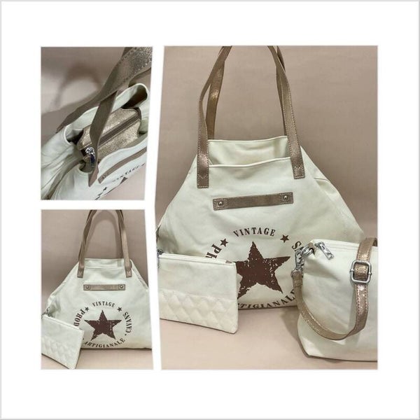 Sac Caba vintage avec étoile, fermeture zip, anses lurex doré