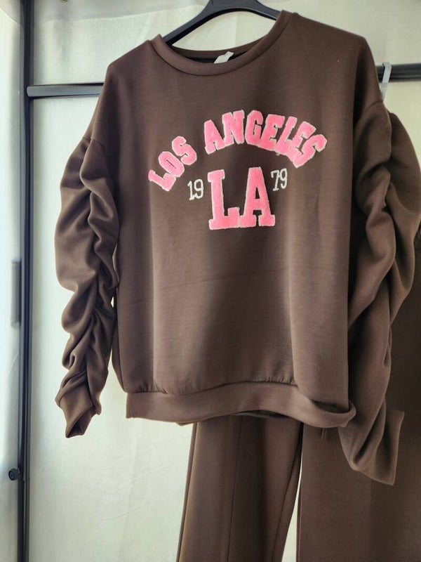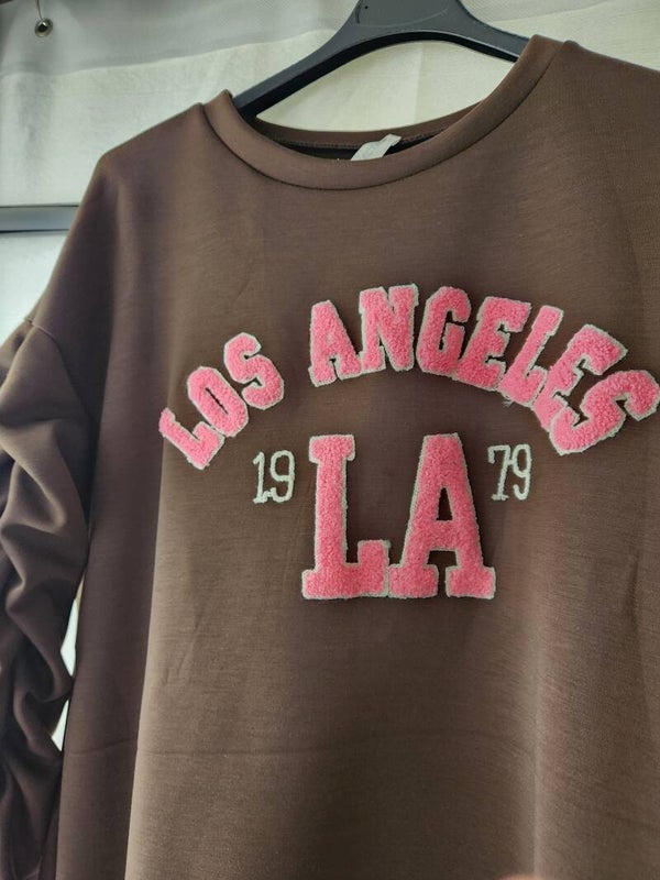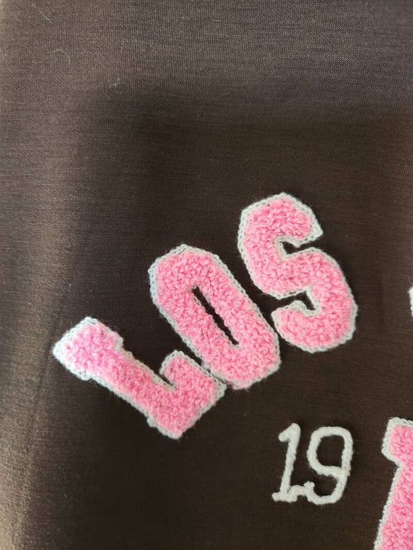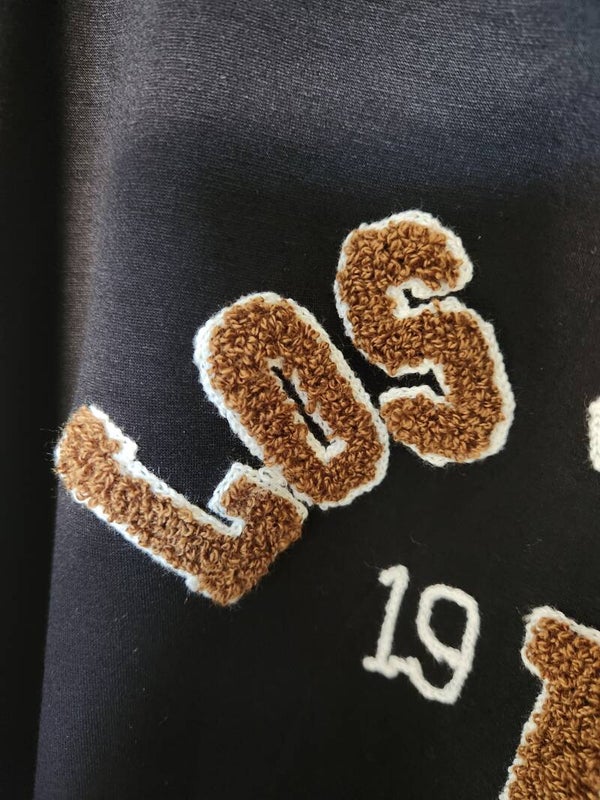 Décontractée, matière agréable à porter, écriture broderie moumoute.