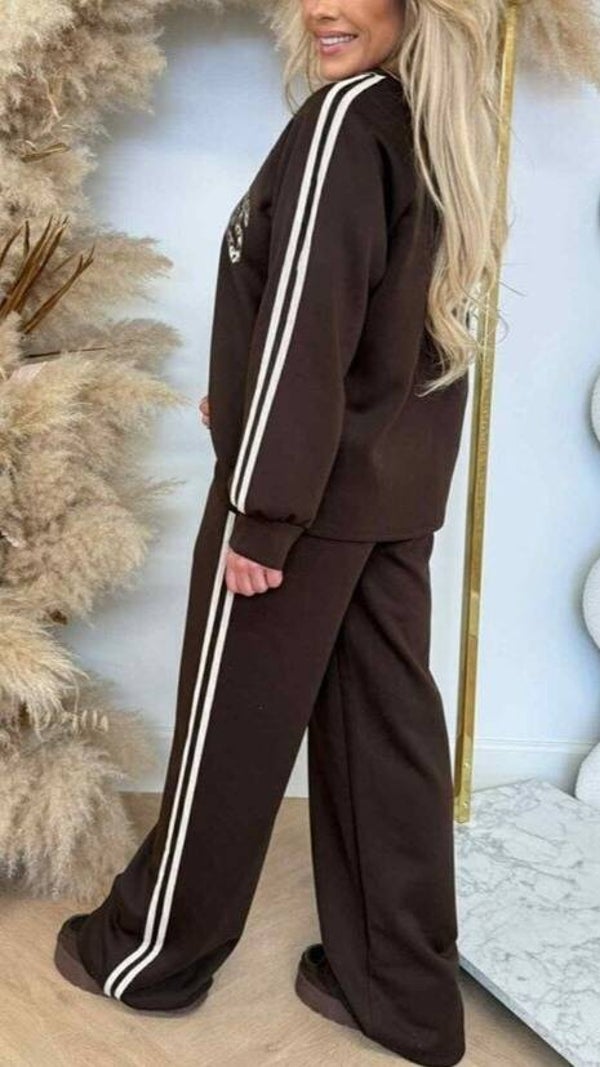 Ensemble Los Angeles 91 avec imprimé léopard 🐆, bandes sur le côté du sweat et du jogging.